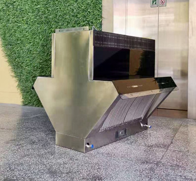 由于不需要連接煙管或煙道,適合任何環境下的餐飲廚房,商場中島等等均可安裝使用,實現商業餐飲功能;在室內吊裝時機器前后兩面,可以同時烹飪,同時進煙,在遠超國家環保要求的同時,實現了室外不排放,室內無污染,增加了烹飪面積,降低了餐飲設施成本;同時正面出風的形式對廚房間的空間高度沒有了要求,非常適合火鍋店、燒烤房、小吃餐車,集裝箱式美食房,戶外小型美食房等餐飲場所。